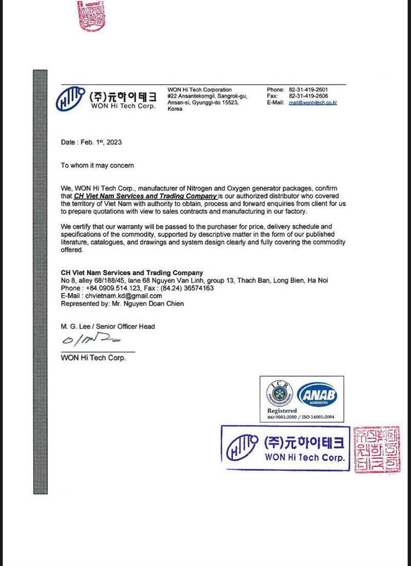 CH Việt Nam luôn mang đến những giải pháp tối ưu nhất cho khách hàng. Đặc biệt, dòng sản phẩm Máy tạo khí Nitơ do CH Việt Nam cung cấp không chỉ đảm bảo nguồn cung cấp khí ổn định, chất lượng cao mà còn giúp doanh nghiệp tiết kiệm chi phí vận hành, nâng cao hiệu suất sản xuất và bảo vệ môi trường. Với CH Việt Nam, khách hàng hoàn toàn yên tâm về chất lượng sản phẩm và dịch vụ.