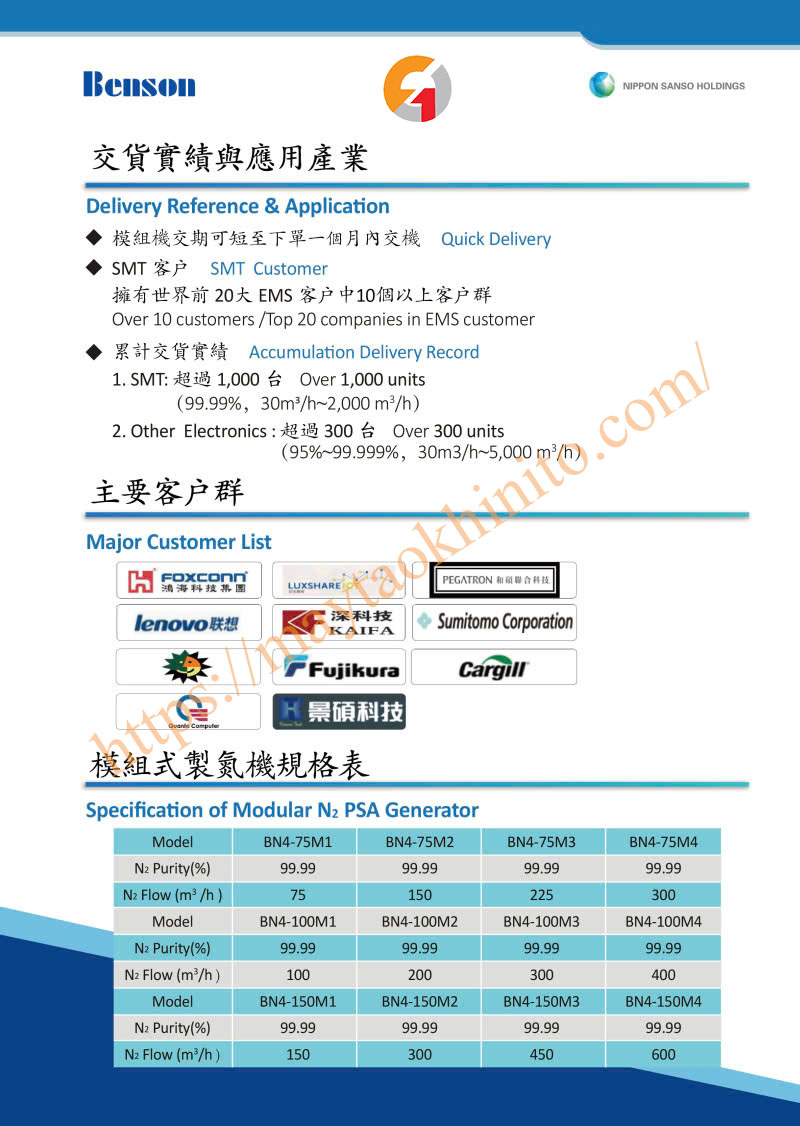 - Thương hiệu uy tín từ Đài Loan: BENSON là nhà sản xuất hàng đầu trong lĩnh vực máy tạo khí nitơ, được tin dùng trên toàn thế giới.